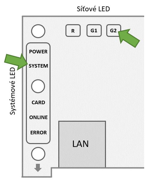 Upozornění: Start zařízení trvá přibližně 30 sekund od zapnutí (přivedení napájecího napětí). Teprve potom je zařízení vyhledatelné na síti. U přístupových jednotek v tomto okamžiku začne pravidelně blikat zelená dioda SYSTEM.